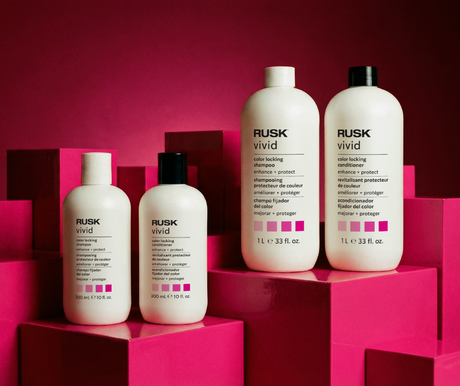 Wash hair with RUSK Vivid Color Locking Shampoo & rinse
